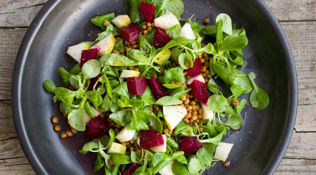 Ensaladas con una base vegetal (lechuga, tomate, zanahoria, pepino) a la que añadiremos hidratos de carbono como pasta ó patata , y/o proteínas como legumbres, quinoa, atún, salmón. Podemos añadir grasas saludables como frutos secos, aguacate y el aliño más saludable será el aceite de oliva virgen extra.